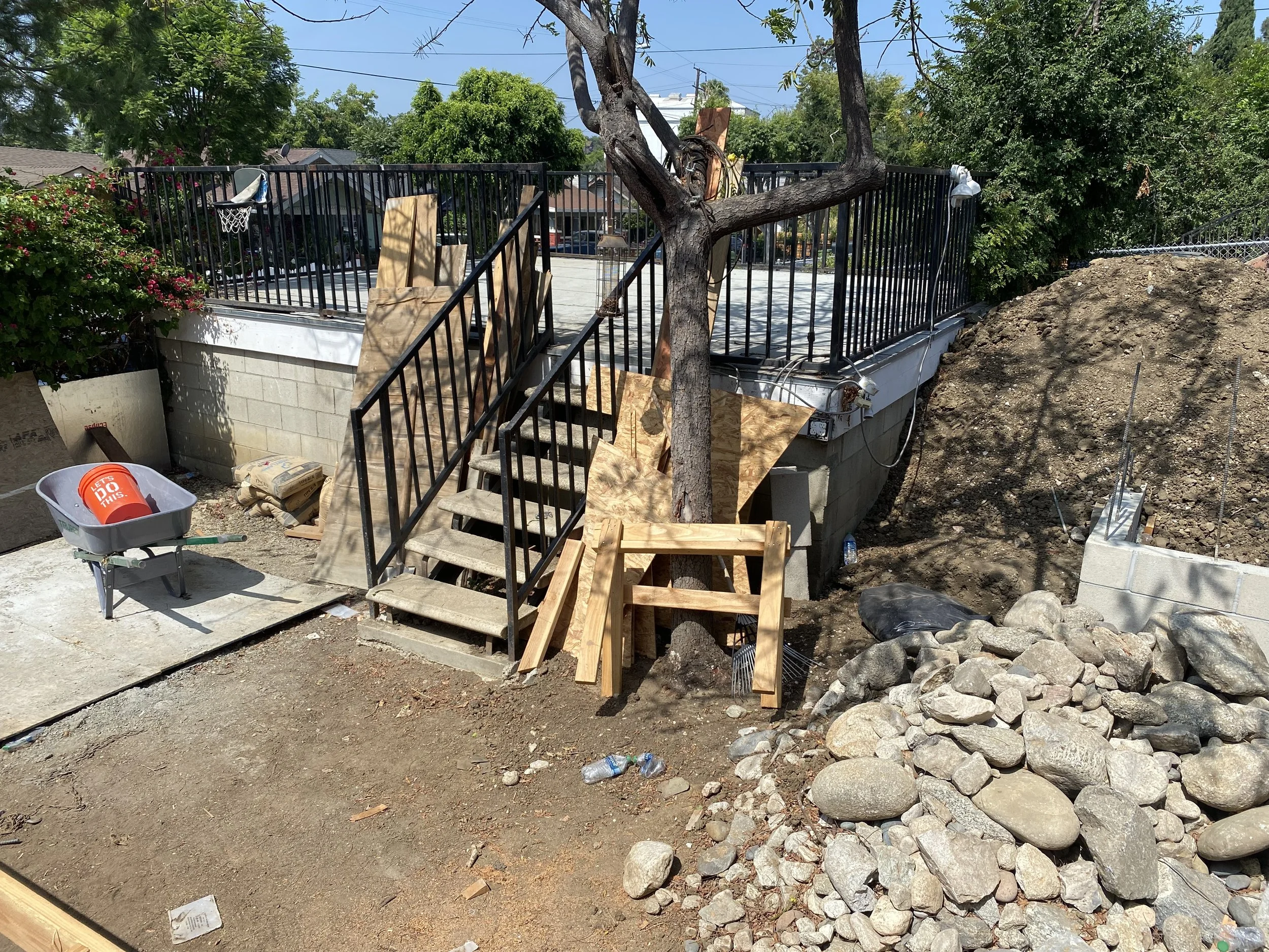 Before image looking towards detached garage.